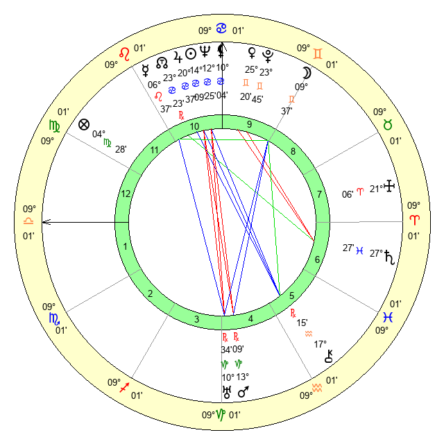 | Sun | 14 Cancer 10 | 15 Cancer 35 | 8 Scorpio 53 |