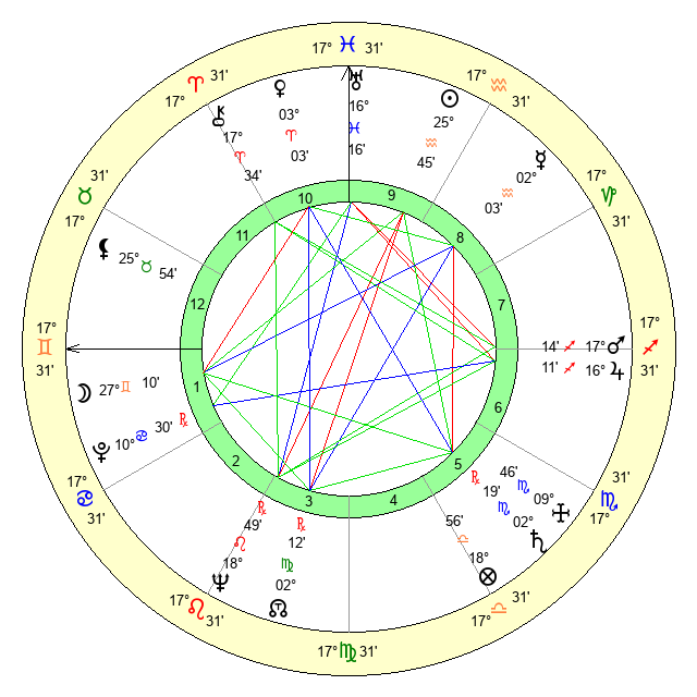 | Moon | 27 Gemini 6 | 2 Libra 31 | 18 Pisces 23 |