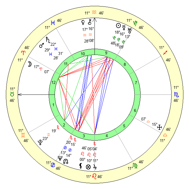 | Pluto | 23 Gemini 19 | 3 Aquarius 0 | 23 Gemini 25 |