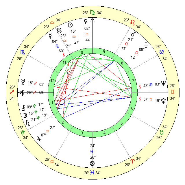| Venus | 2 Libra 45 | 24 Virgo 49 | 7 Pisces 6 |