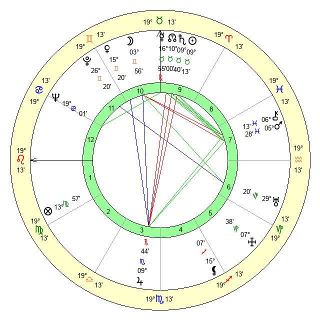 | Moon | 3 Gemini 57 | 21 Gemini 21 | 8 Leo 33 |