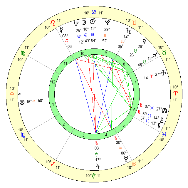 | Sun | 12 Cancer 4 | 12 Cancer 58 | 0 Scorpio 41 |