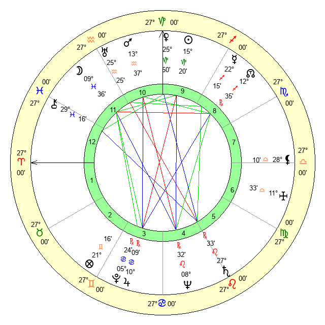 | Neptune | 8 Leo 32 | 27 Pisces 23 | 6 Leo 32 |