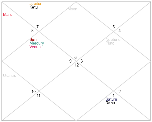 | Ketu | 16 Scorpio 49 | 12 Virgo 33 | 10 Scorpio 44 |