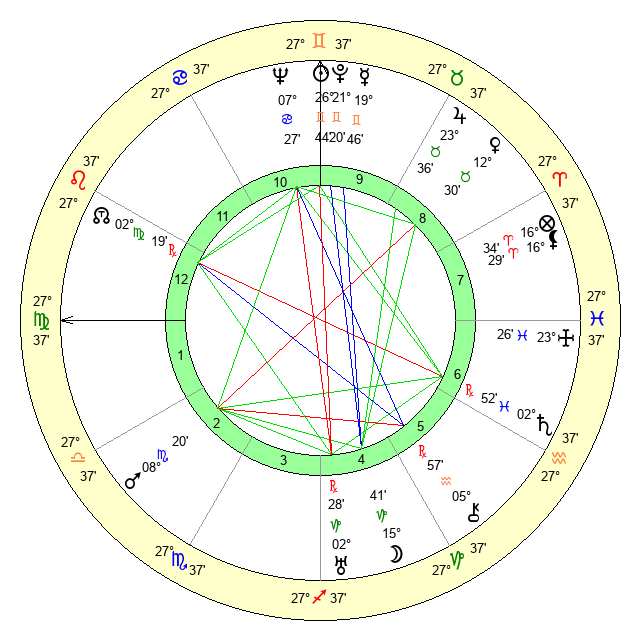 | Pluto | 21 Gemini 21 | 3 Aquarius 22 | 22 Gemini 39 |