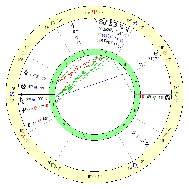 | Sun | 1 Aries 30 | 2 Aries 19 | 15 Cancer 55 |