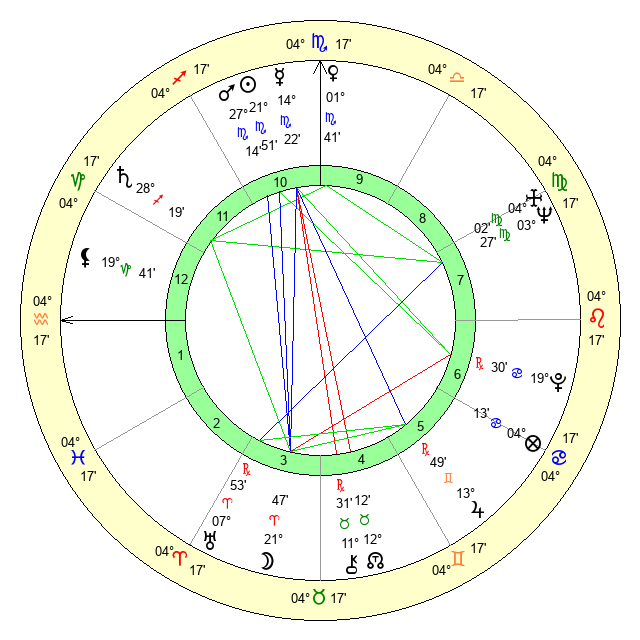 | Neptune | 3 Virgo 28 | 29 Pisces 32 | 2 Virgo 17 |