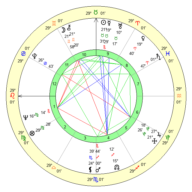 | Moon | 21 Gemini 58 | 22 Scorpio 14 | 13 Virgo 39 |