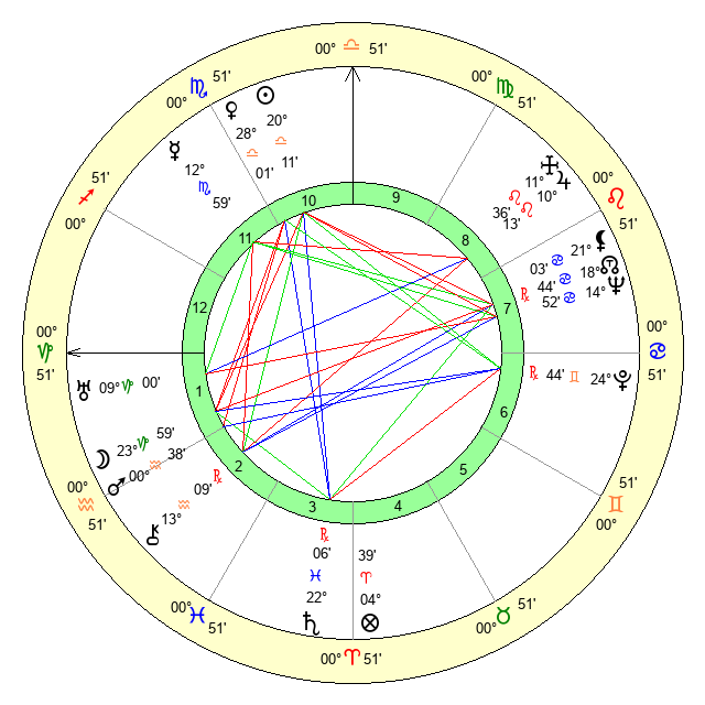 | Moon | 23 Capricorn 57 | 3 Leo 23 | 25 Taurus 42 |