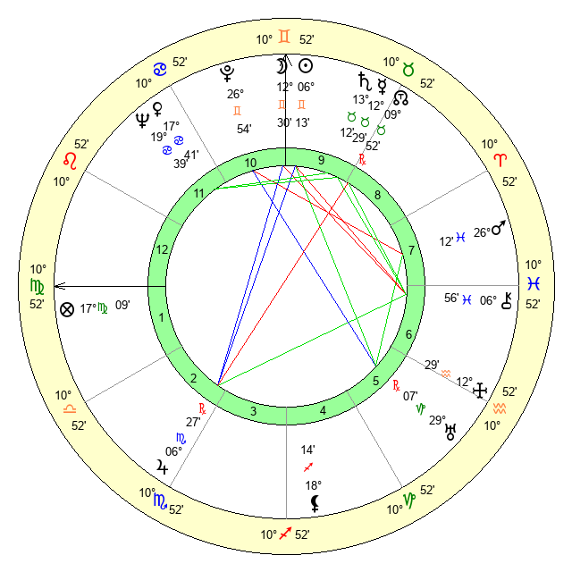 | Jupiter | 6 Scorpio 11 | 27 Gemini 16 | 12 Scorpio 30 |