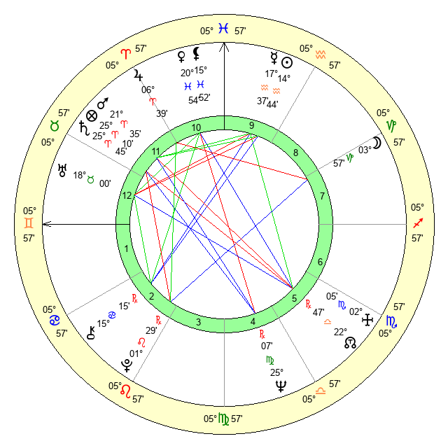 | Venus | 20 Pisces 54 | 0 Aries 16 | 24 Gemini 12 |
