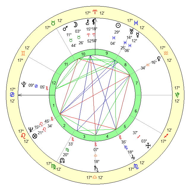 | Sun | 29 Pisces 4 | 0 Aries 20 | 7 Cancer 52 |