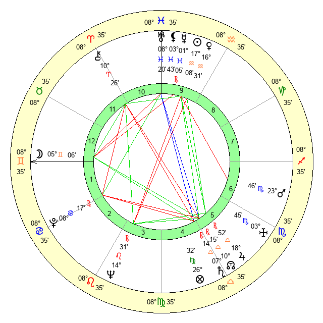 | Moon | 5 Gemini 6 | 6 Gemini 0 | 19 Pisces 57 |