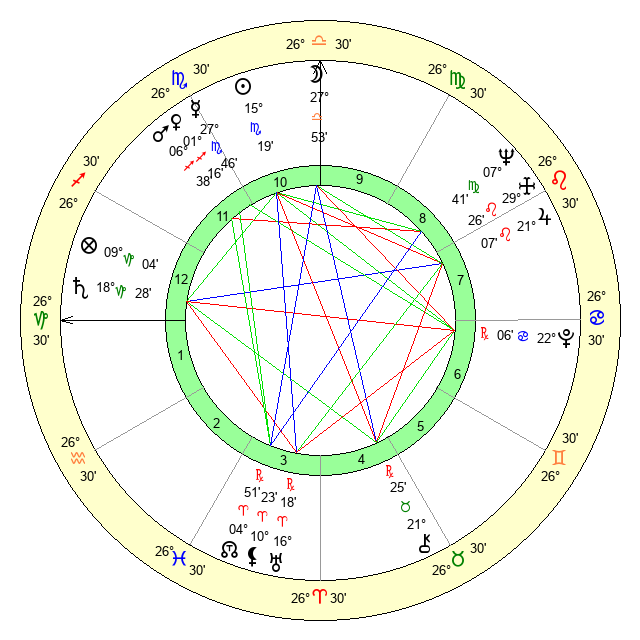 | Neptune | 7 Virgo 41 | 29 Pisces 38 | 7 Virgo 2 |