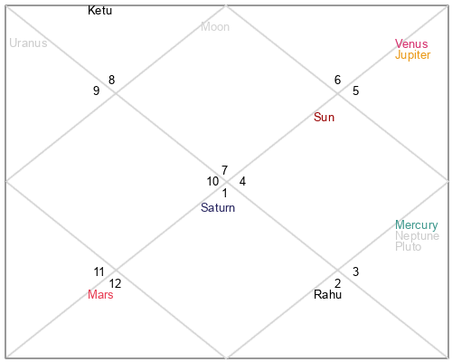 | Rahu | 14 Gemini 12 | 20 Pisces 36 | 8 Gemini 3 |