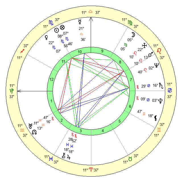| Venus | 22 Scorpio 8 | 24 Libra 23 | 8 Aries 12 |