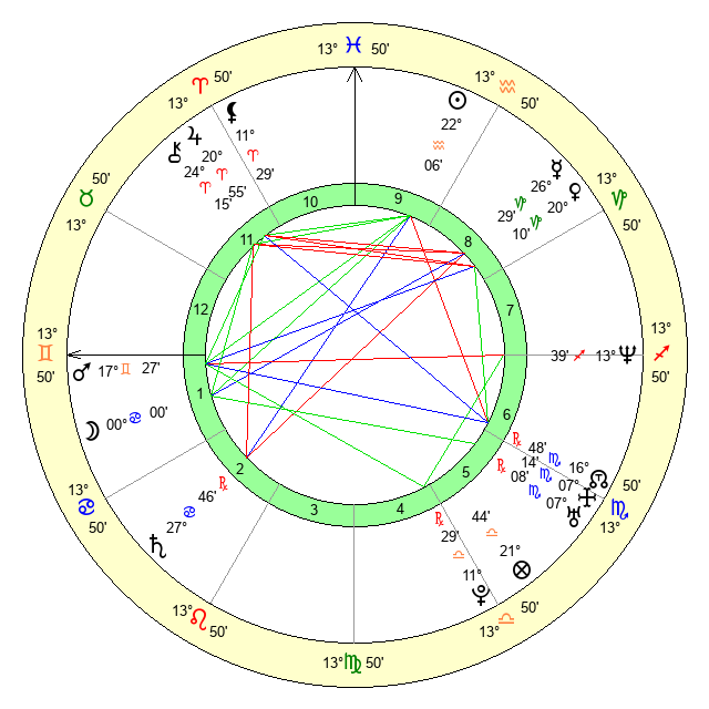 | Sun | 22 Aquarius 6 | 23 Aquarius 13 | 11 Aries 6 |