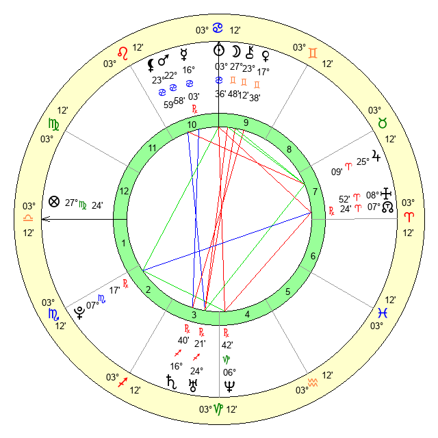 | Moon | 27 Gemini 42 | 8 Cancer 1 | 8 Scorpio 33 |