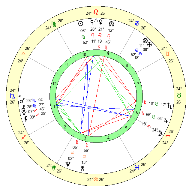 | Mercury | 28 Leo 12 | 24 Leo 39 | 15 Libra 25 |