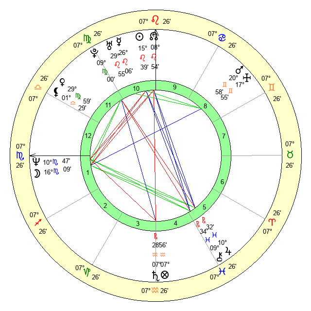 | Venus | 29 Virgo 59 | 9 Cancer 56 | 24 Scorpio 50 |