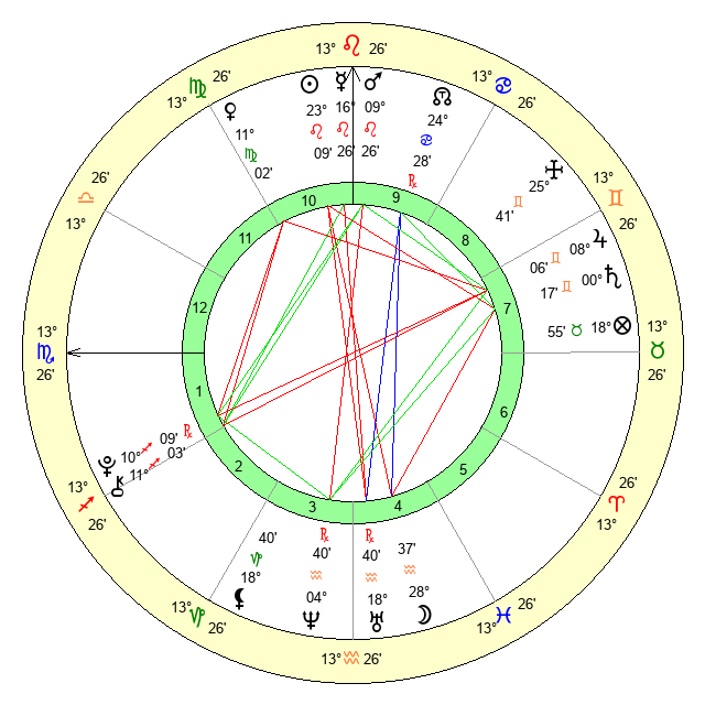 Mercury | 16 Leo 27 | 5 Leo 23 | 2 Libra 54 |