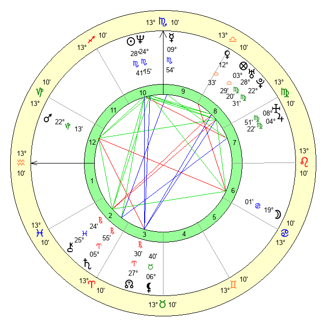 | Neptune | 24 Scorpio 15 | 29 Pisces 27 | 26 Scorpio 6 |