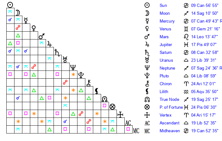 Neptune | 7 Sagittarius 23 | 2 Aries 10 | 6 Sagittarius 49 |