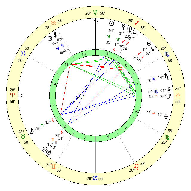 | Moon | 6 Pisces 9 | 27 Aries 1 | 7 Virgo 56 |