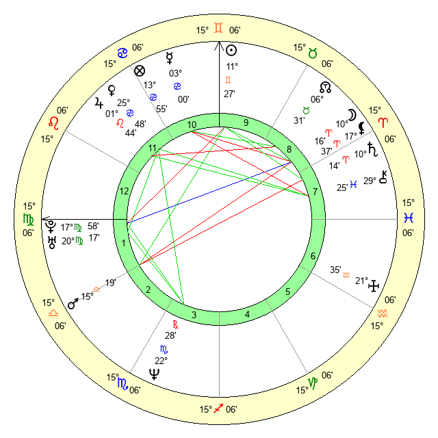 | Moon | 10 Aries 15 | 7 Virgo 26 | 19 Taurus 51 |