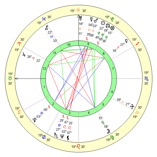 | Moon | 18 Virgo 47 | 18 Cancer 6 | 5 Virgo 10 |