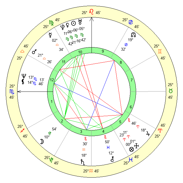 | Venus | 6 Virgo 22 | 5 Leo 36 | 23 Scorpio 33 |
