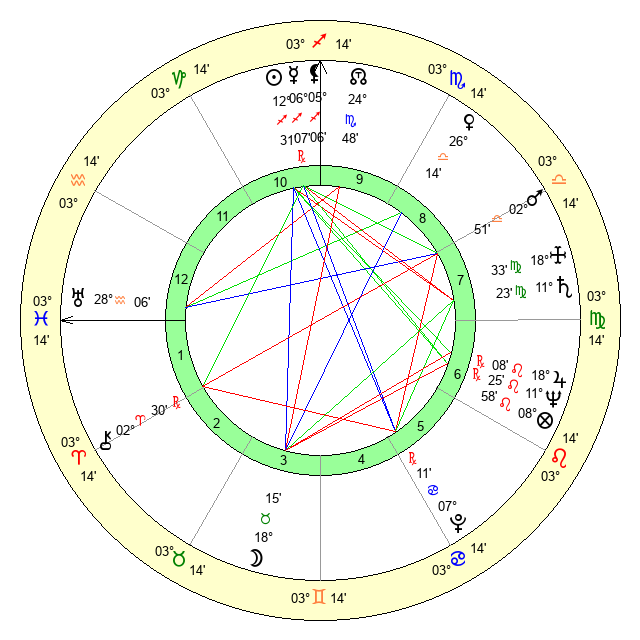| Saturn | 12 Virgo 5 | 25 Pisces 7 | 7 Virgo 24 |
