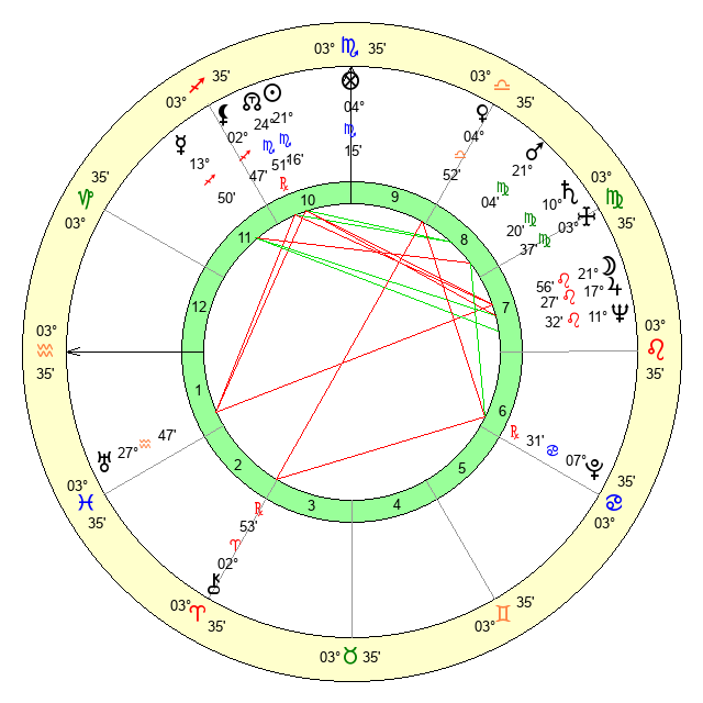 | Saturn | 11 Virgo 1 | 25 Pisces 13 | 9 Virgo 1 |