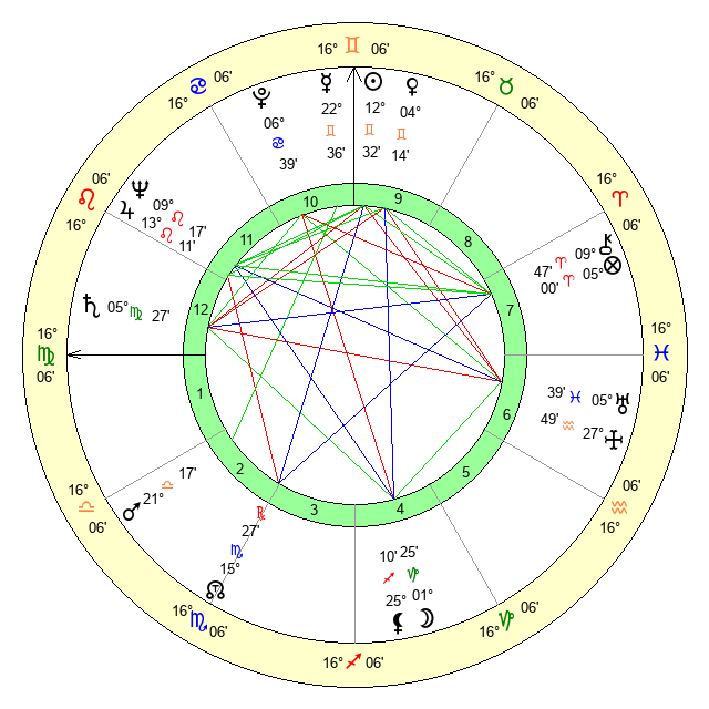 | Saturn | 6 Virgo 9 | 0 Aries 32 | 16 Virgo 42 |