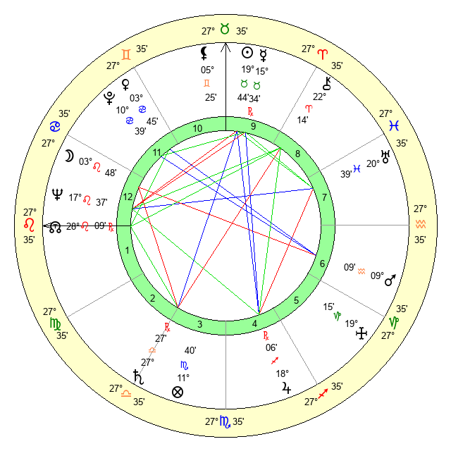 | Mercury | 15 Taurus 34 | 0 Taurus 20 | 23 Virgo 15 |