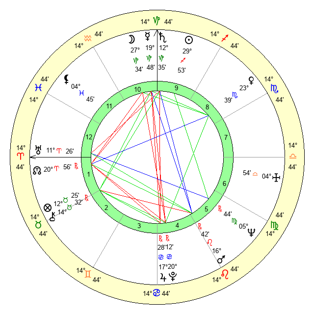 | Neptune | 5 Virgo 44 | 27 Pisces 11 | 3 Virgo 36 |