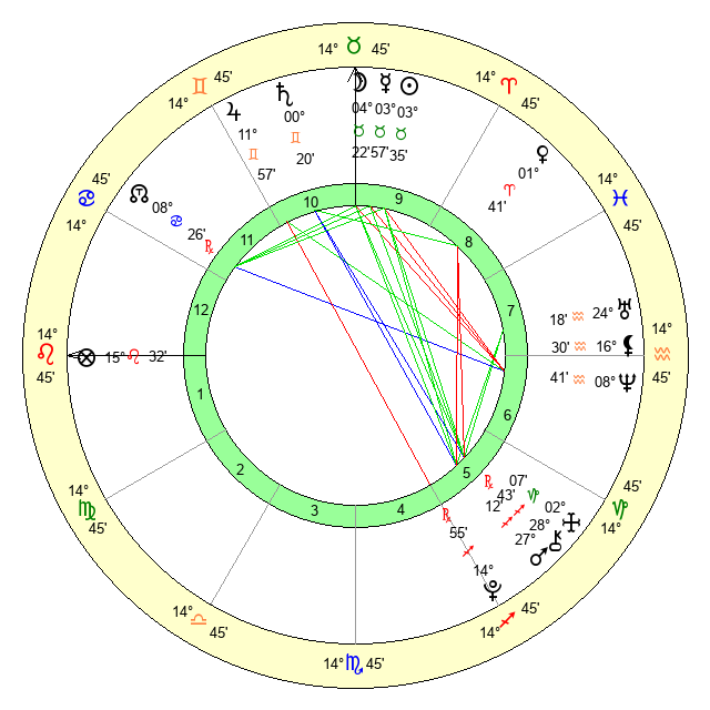 Moon | 4 Taurus 26 | 6 Pisces 54 | 21 Pisces 46 |