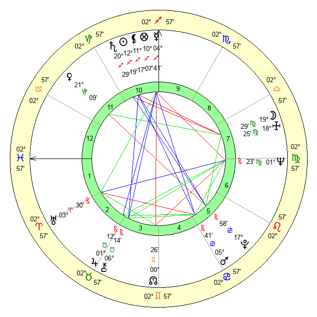 Neptune | 1 Virgo 24 | 27 Pisces 7 | 29 Leo 29 |