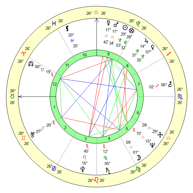 | Saturn | 5 Virgo 44 | 16 Pisces 4 | 0 Virgo 26 |