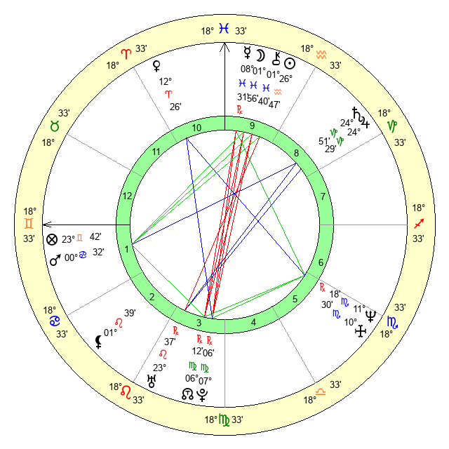 | Mercury | 8 Pisces 31 | 2 Pisces 13 | 18 Aries 18 |