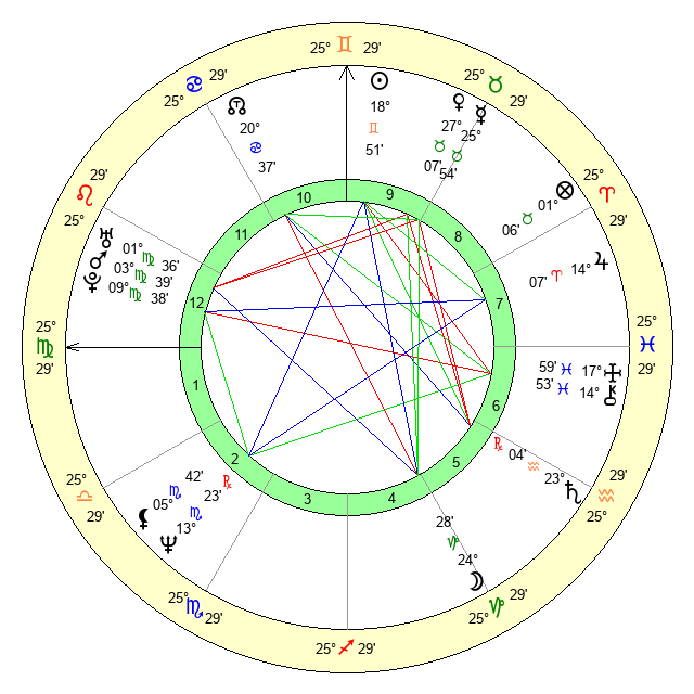 | Mars | 3 Virgo 39 | 26 Leo 11 | 9 Libra 23 |