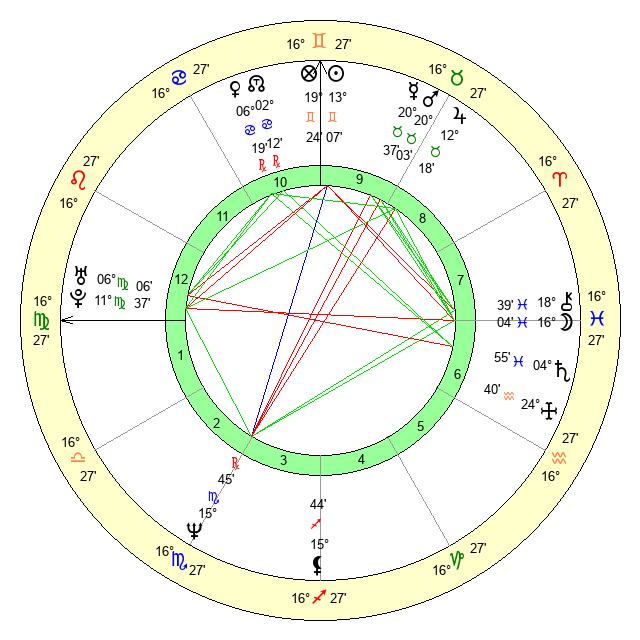 | Moon | 15 Pisces 52 | 19 Virgo 43 | 15 Gemini 13 |