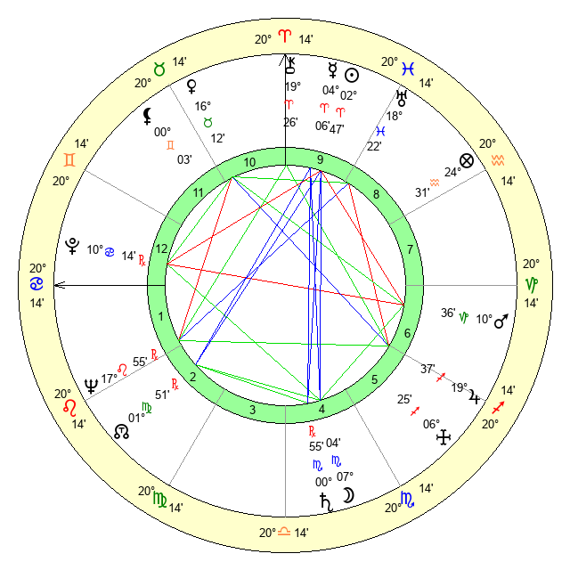 | Jupiter | 19 Sagittarius 23 | 14 Gemini 46 | 11 Sagittarius 37 |
