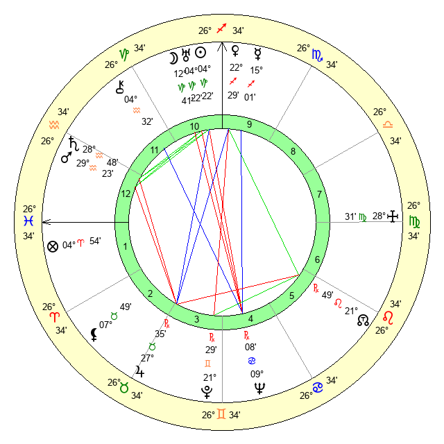 | Saturn | 29 Aquarius 12 | 25 Pisces 46 | 12 Pisces 27 |