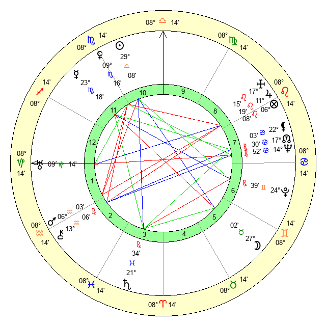 | Mars | 5 Aquarius 46 | 21 Scorpio 17 | 26 Aries 37 |