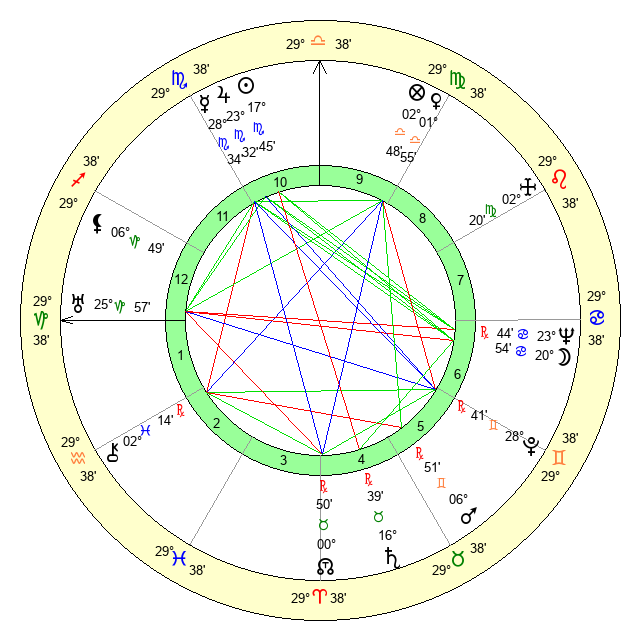 | Moon | 20 Cancer 41 | 7 Leo 16 | 24 Virgo 27 |