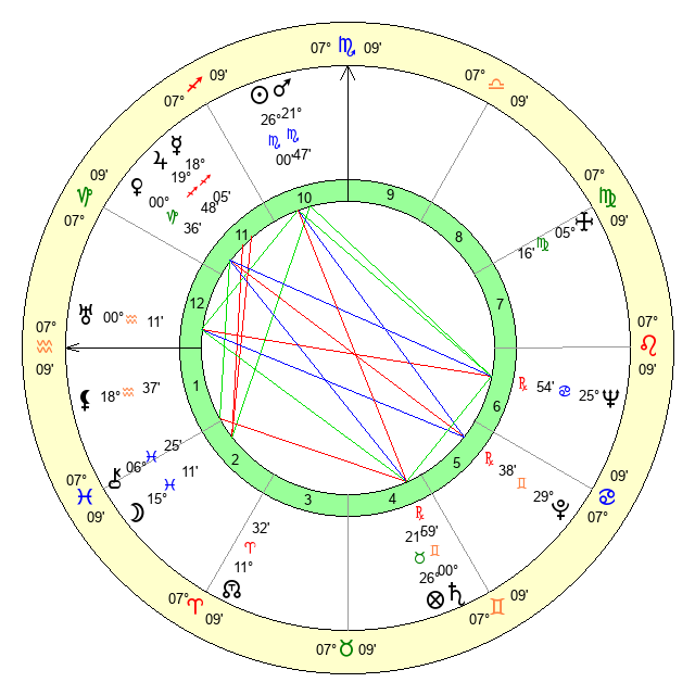 | Sun | 25 Scorpio 34 | 26 Scorpio 10 | 20 Pisces 5 |