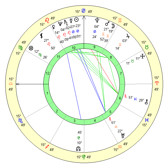 | Sun | 23 Cancer 8 | 24 Cancer 0 | 8 Scorpio 16 |