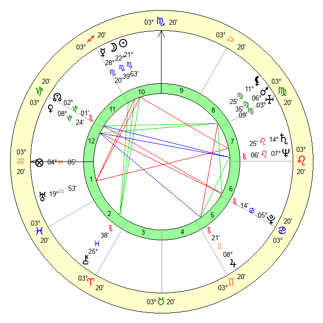 | Mars | 6 Virgo 17 | 7 Sagittarius 1 | 28 Virgo 39 |