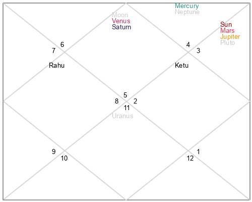 | Rahu | 2 Sagittarius 0 | 21 Pisces 47 | 26 Scorpio 23 |